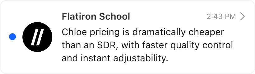 Chloe's pricing is dramatically cheaper than an SDR, with faster quality control and instant adjustability.