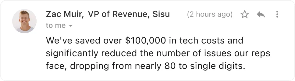 We've saved over $100,000 in tech costs switching from Salesforce to Close. We're doing things we never dreamed of doing in a CRM.