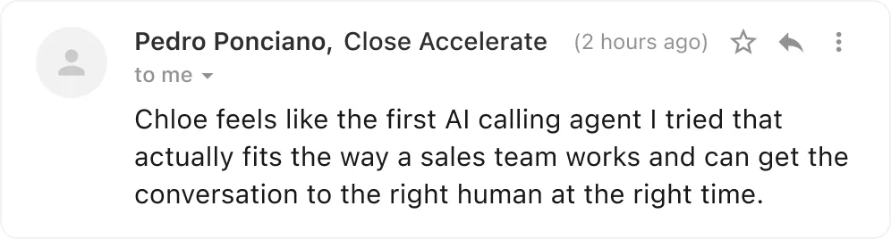 "If you're worried your clients will be turned off by AI, don't be — it's just noise. Close and Chloe have done nothing but impact my bottom line in a positive way."