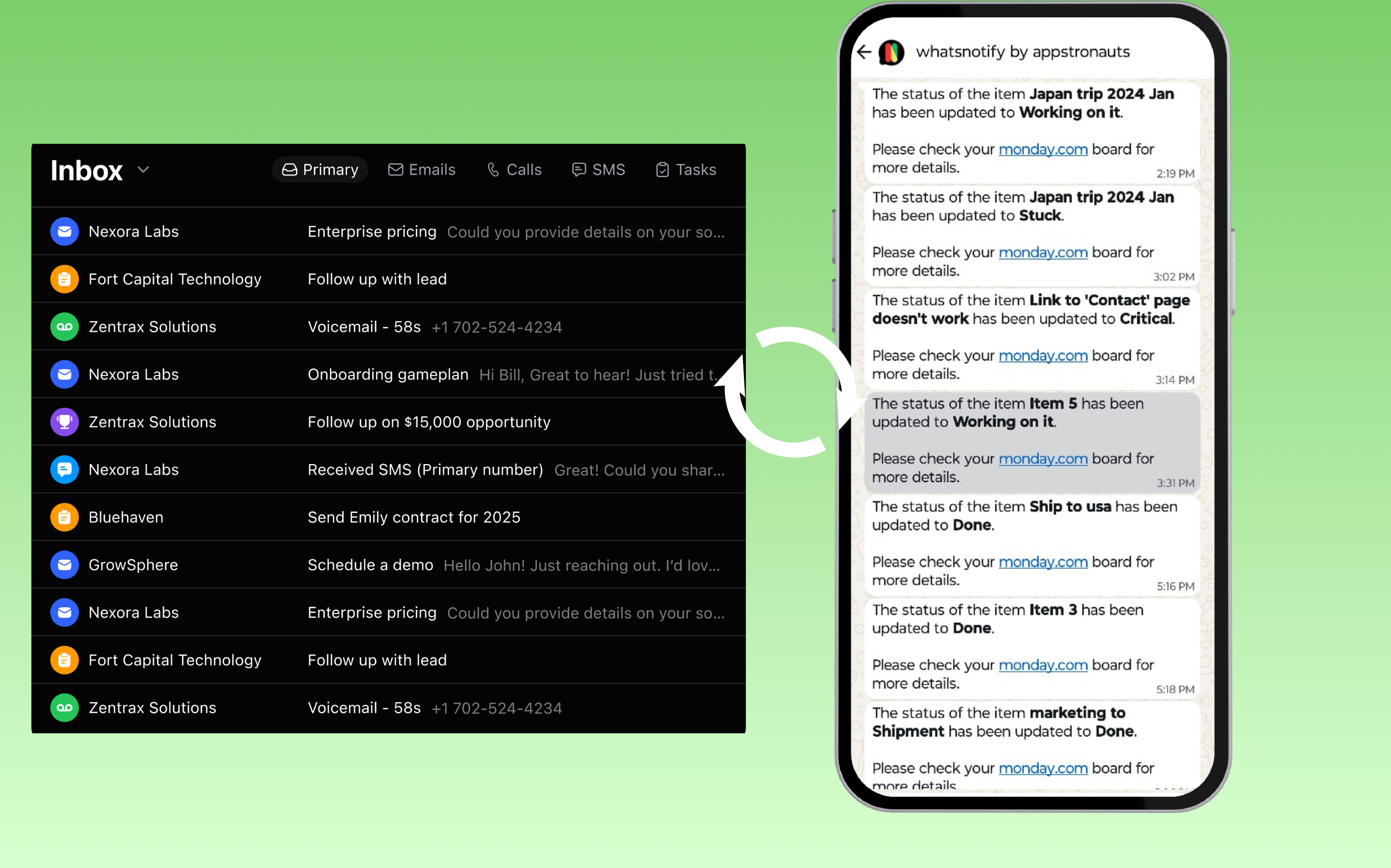 WhatSync syncs every WhatsApp conversation inbound and outbound directly into your Close CRM timeline in real time. No manual logging, no copy-pasting, no switching between apps. Your reps keep using WhatsApp as they always do, and every message automatically appears as a native activity on the right lead.