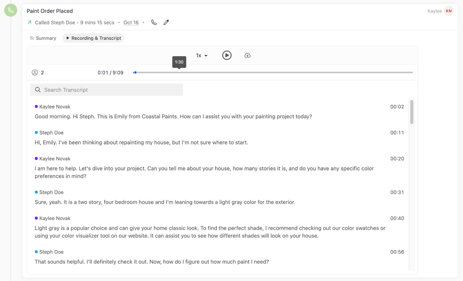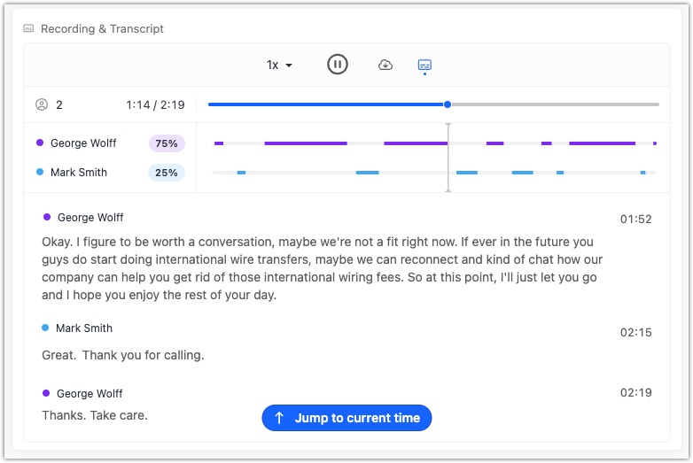 Call Assistant will automatically transcribe all of your recorded calls made through Close.