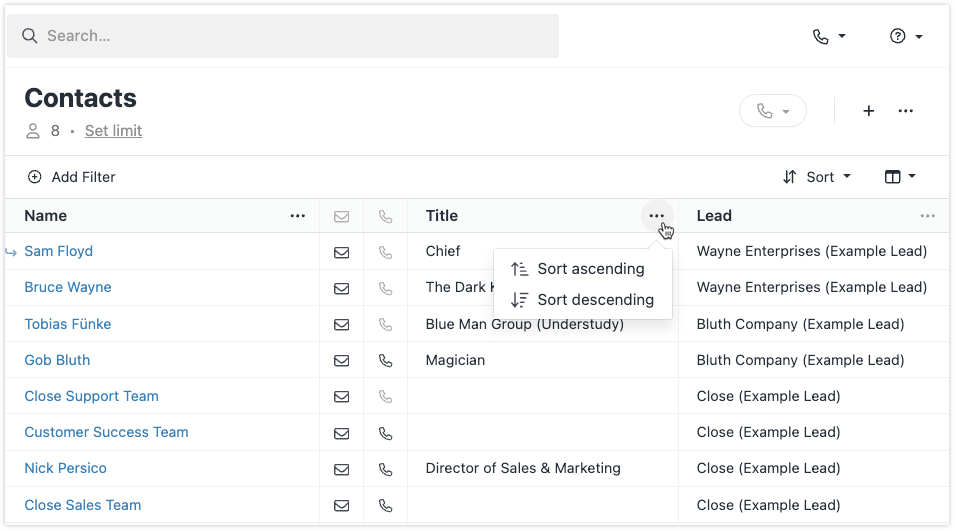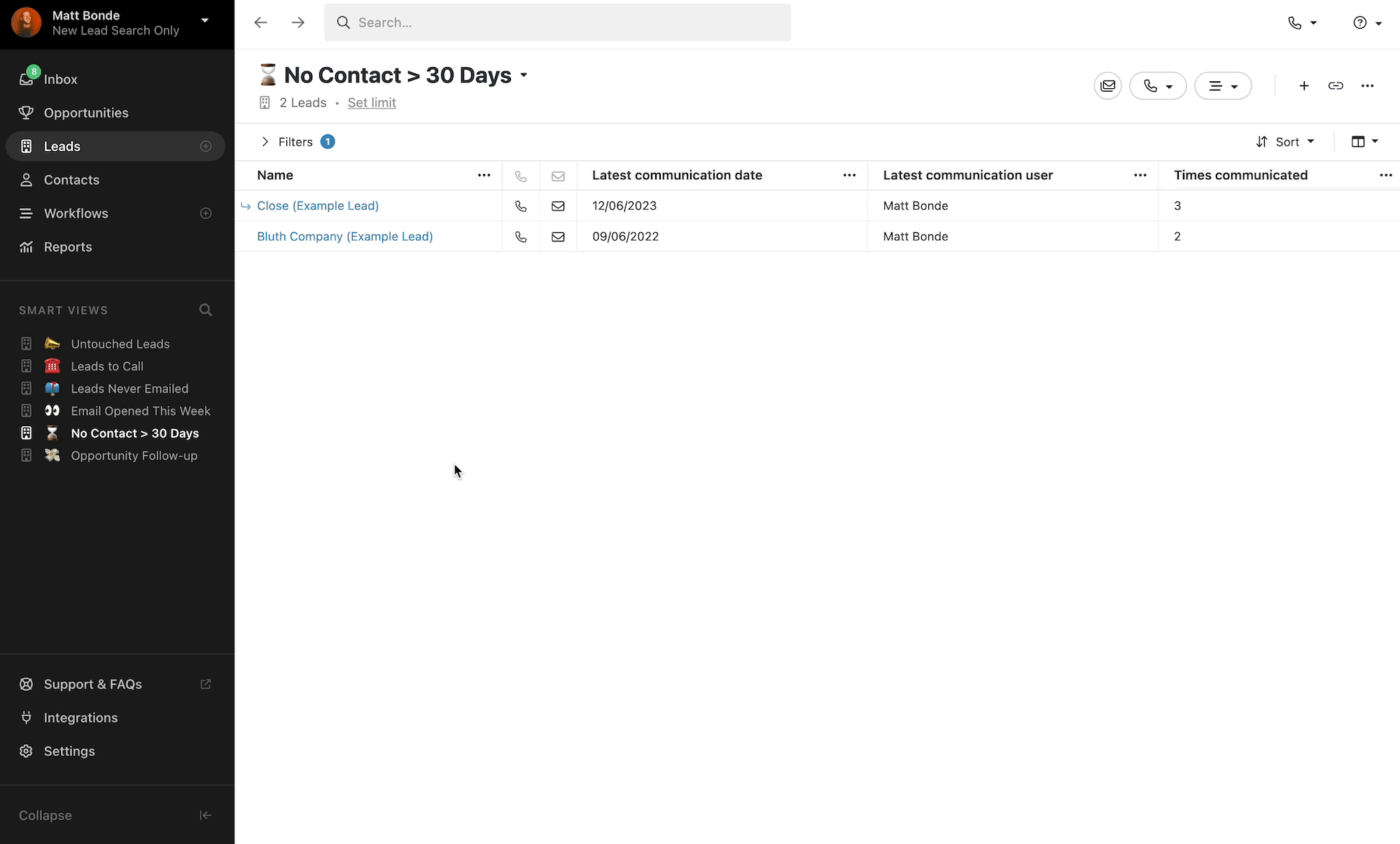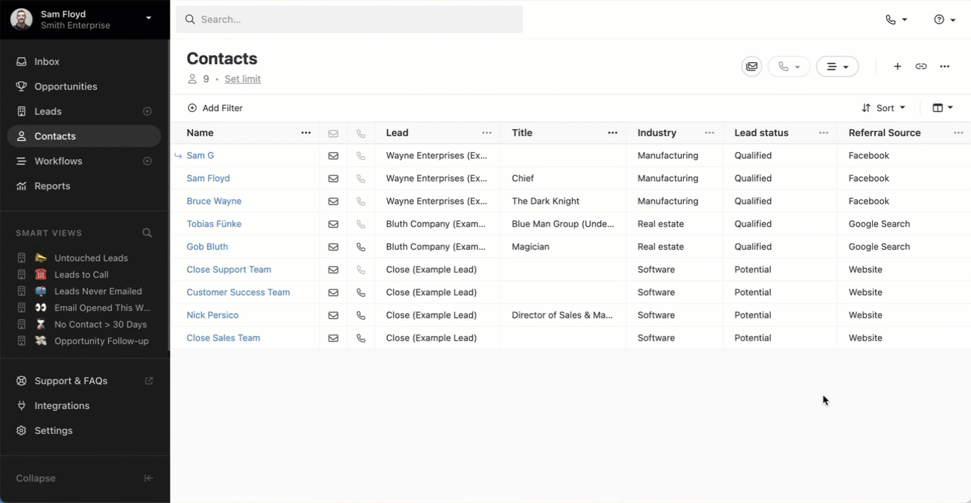 When creating a new Smart View or updating an existing one, we'll automatically save your column set so that it loads along with the Smart View. This will help teams that want to focus on different pieces of information on the Lead or Contact when using particular views.