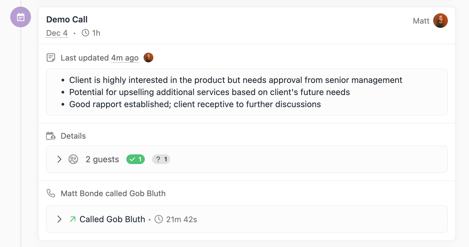 Calls will now automatically attach to Meetings in certain scenarios to help declutter your activity feed.