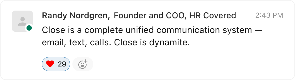 Close connects to your favorite sales, marketing, and support tools. Out of the box.