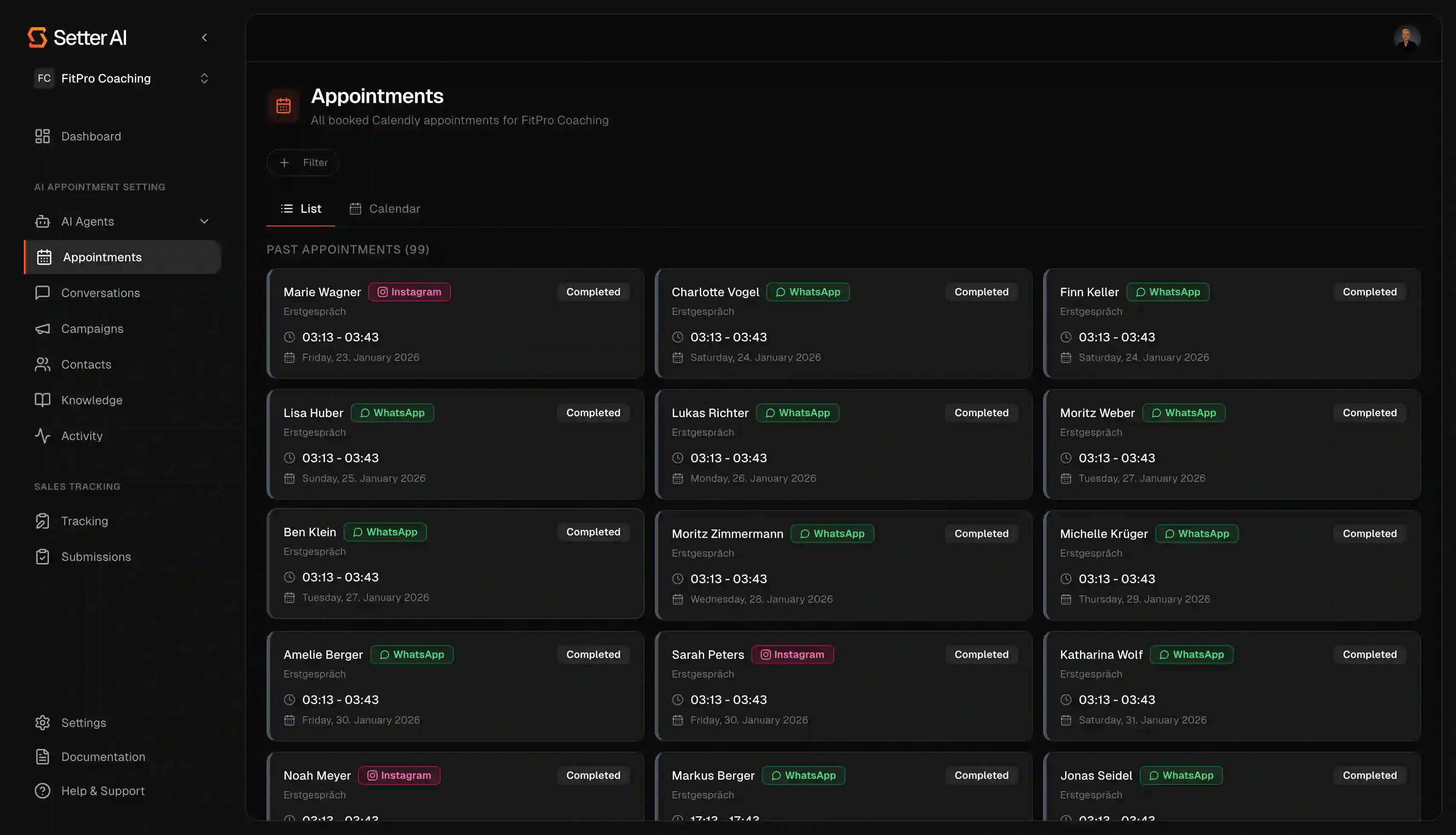 Automate your appointment setting with AI-powered agents. Setter AI pulls dormant leads directly from your Close pipeline, re-engages them via WhatsApp, and handles incoming Instagram DMs — qualifying prospects through natural conversation and booking sales calls on autopilot. Every new contact and appointment syncs back to Close in real time. Turn your unused CRM data into booked appointments without lifting a finger.