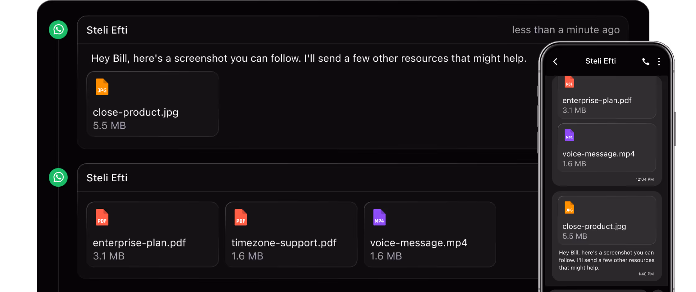 When WhatsApp threads live in Close, you stay on top of your conversations.
